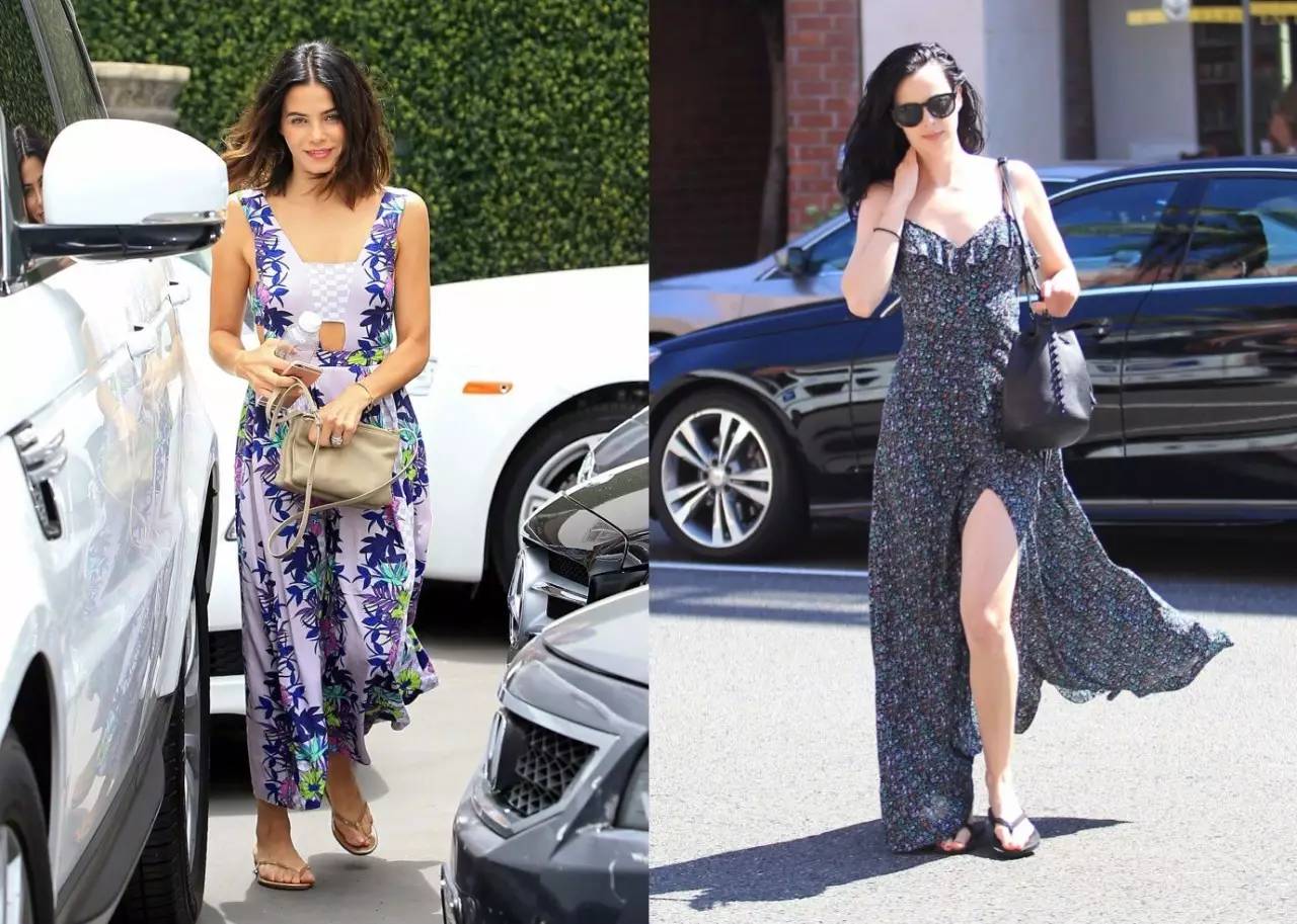 长裙飘飘尽显女神范,特别是右边的这种开衩长裙,在不经意间露出大长腿,仙气十足又慵懒随意。