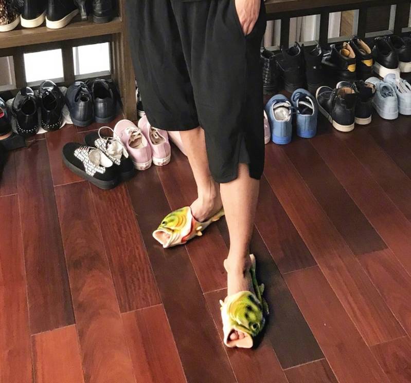 很“小心机”地展示了他收藏丰富的鞋柜,但由于他的新拖鞋实在太抢戏,几乎所有人的重点都放在了新鞋上。那咆哮的鱼嘴,控诉的眼神,仿佛是在表达被踩在脚下的不满↓