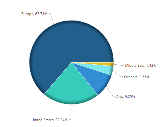 QIA的地产投资多数集中于发达国家和地区。除了在2013年3亿美元投资印度房地产开发商RMZ之外,QIA的投资多数分布在欧美国家,其中欧洲占到了总投资的64%,美国占22%,而亚洲只占不到10%的比例。