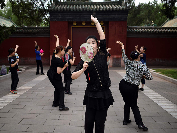 2017年6月12日,北京,一群阿姨在在北京的一所公园内跳舞。