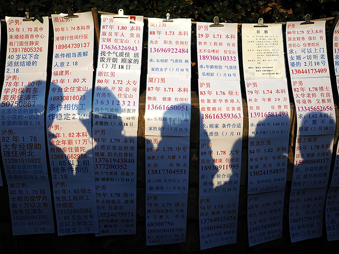 2012年2月19日,父母在上海人民公园相亲角看相亲信息为子女相亲。