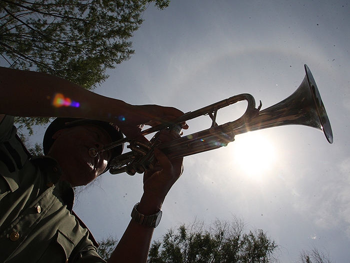 2017年7月29日,在哈尔滨市道里区建国公园里,有一支“老兵军乐团”定期进行演出。团员多数都有从军经历,最年长的今年已79岁,对音乐的共同爱好把他们聚在了一起。