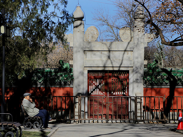 2016年12月1日,北京,市民坐在公园长椅上享受冬日暖阳。