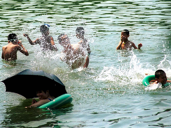 2000年7月23日,烈日当头,位于北海公园北面的前海成了人们游泳消暑的好地方,尽管“禁止游泳”的牌子竖立湖旁,但是难当酷暑的孩子、学生、老人等空闲之士还是络绎不绝的从四面八方涌来,有的还在此搓起了澡。