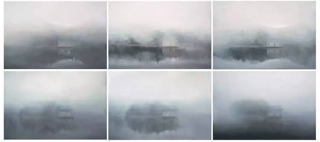 于是,他再现景物从雾中浮现然后消失的过程。对时间进行视觉阅读后,它与人们的日常想象区别开来,占据了画面本身。