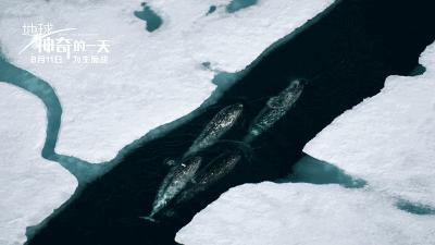 北极的冰雪慢慢融化,游弋在冰川深处的独角鲸,终于破冰而出;