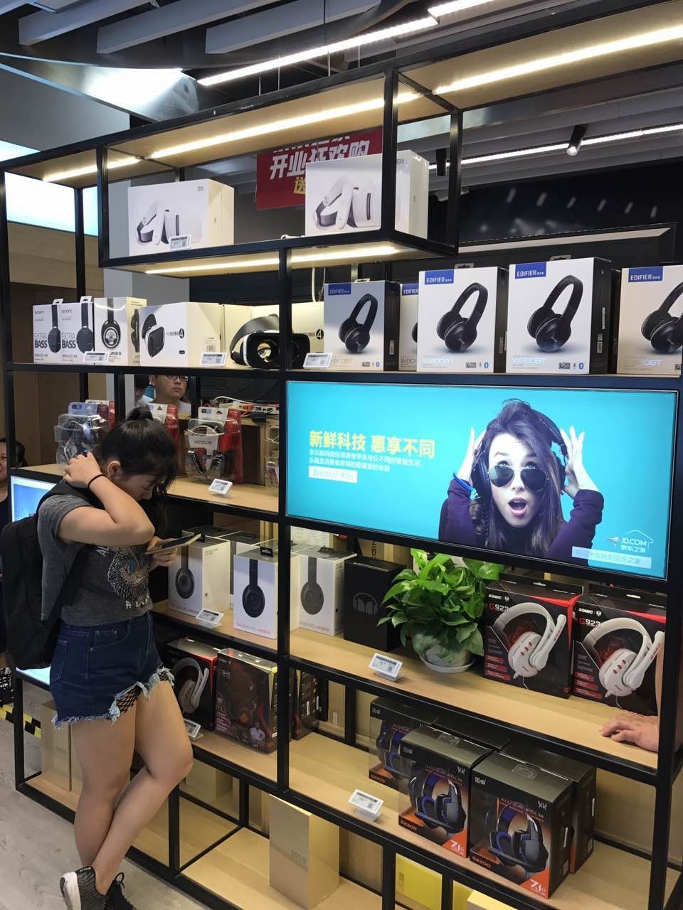 进入京东之家,我的心情立刻变得十分放松。首先,装修的风格、色调十分年轻、时尚。多彩的置物架,精心设计的饰物,可互动的显示屏……顿时让店铺变成了体验馆。