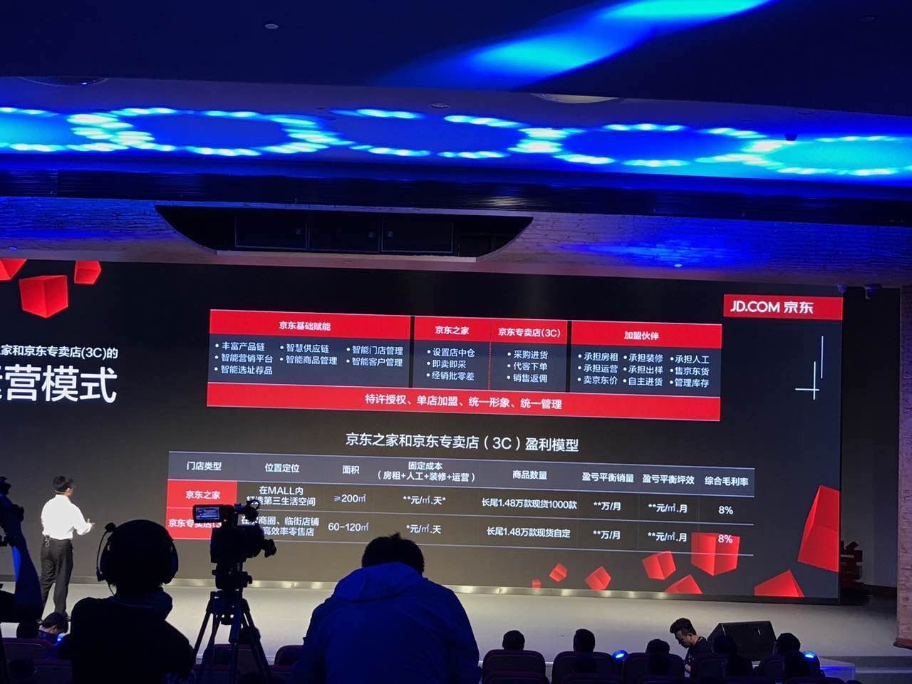 加盟合作伙伴则承担房租、装修、人工运营等一系列经营工作。简单讲,京东赋能加盟商,让他们赚钱,而不是自己去开店经营。