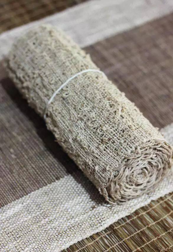 它是以苎麻为原料编织而成的麻布。