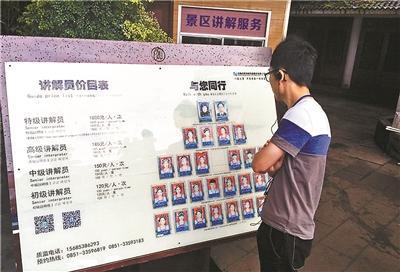 据北京青年报报道,近日,贵州安顺黄果树瀑布出现特级讲解员,一人一次收费1800元,特级讲解员的身份为专家教授,能否预约成功需要看对方时间。网传的一份黄果树瀑布景区讲解员价目表显示,该景区讲解员共分为初级、中级、高级和特级四个级别,价格分别是每人讲解一次120元、150元、180元和1800元,在价目表右侧还附有讲解员的照片。景区共有两名特级讲解员,备注信息显示,想要请特级讲解员做讲解需要提前七天预约。