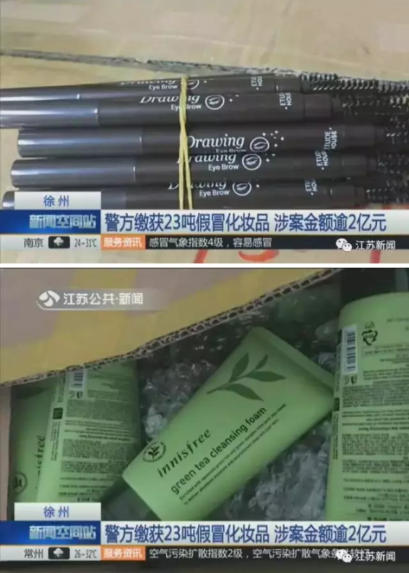 据央视财经等媒体报道,眉笔、定妆粉、洗面奶、睫毛膏……这些韩国网红款化妆品是不是感觉很眼熟?有没有你用的那款呢?大家熟悉的悦诗风吟(innisfree)、伊蒂之屋(ETUDE HOUSE)等化妆品牌赫然在列。其实这是江苏省徐州市警方近日侦破的一起特大跨境跨省制售假冒境外品牌化妆品案件,共缴获假冒化妆品23吨2765万件,130多万人次被骗,涉案金额达2亿余元。