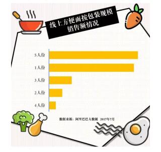 根据《研究》显示,5人份的方便面更容易受到多数消费者的青睐,从今年7月线上按包装规模来看,销售额排名第一。而为此做出最大贡献的消费人群,是23~28岁的年轻人,尤其是女性。