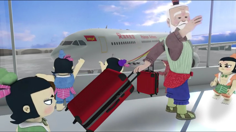 海南航空玩的是“葫芦娃”。故事一开始是七个葫芦娃娃和爷爷要出远门,在飞机上爷爷给葫芦娃们普及安全知识。全片基本路线还是《葫芦兄弟》的设定,打怪升级顺带小科普。
