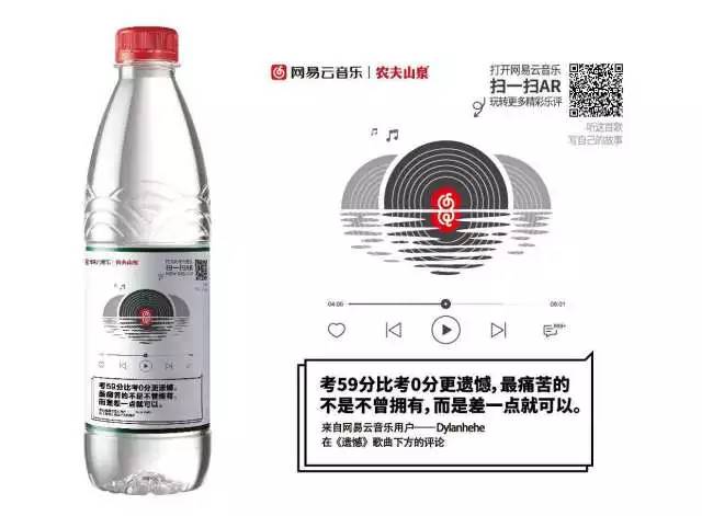 为了进一步吸引新用户,网易云音乐这一年在推广和营销方面同样投入不少。在今年3月20日联合杭港地铁推出“乐评专列:看见音乐的力量”地铁营销之后,它又在6月5日与扬子江航空合作了“音乐专机”营销活动。不久前,它又和农夫山泉联合推出了名为“乐瓶”的瓶装矿泉水。