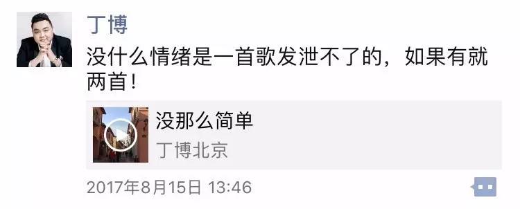 “没什么情绪是一首歌发泄不了的,如果有就两首!”8月15日,网易云音乐副总裁丁博在朋友圈写道,同时分享了一首自己在唱吧录制的歌曲,《没那么简单》。这已经是不常发朋友圈的他连续第二天发朋友圈,前一天他刚“抱怨”了自己的智商。