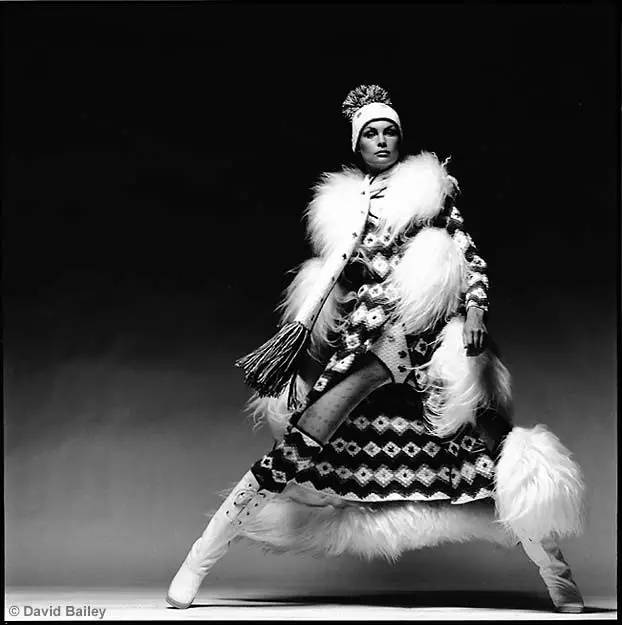 贝利:回到英国后,我不知道要做什么。我喜欢摄影,并且认为它是一件值得做的事情,但我不知道该怎样向这个方向发展。因为我来自伦敦东区的底层社会,没有任何高尚的社会关系,所以当时的我就只能游荡。我曾经想过,也许我可以到伦敦印刷与平面艺术学院深造,但因为我从来没有接受过正规的学校教育,无法进入那里学习。我找到的第一个与摄影有关的工作是在大卫·奥林的摄影棚,只是个跑腿的差事。过了大概三个月后,我开始做约翰·法兰奇的助手,那里使用的是大卫·塞西尔牌闪光灯用品。它们看上去像拍摄电影用的卤素灯,是被有意识地用作闪光灯的。我想约翰是第一个这么用的人。他大多数时候用的都是8×10底片的相机,偶尔也用罗莱克斯双镜头反光相机,虽然我们助手都劝他用哈苏120相机。我为约翰·法兰奇工作了11个月,对我来说,法兰奇是一个对我产生了很大影响的人。后来,英国《时尚》杂志给了我一份合同,让我去他那里工作。最开始在《时尚》杂志工作时,我就用上了哈苏相机、罗莱克斯相机和各种35mm小型相机。当电动卷片器这种新事物出现时,我毫不犹豫就用了。当然,用什么设备还是要取决于工作性质。我不会用35mm相机来拍摄肖像,我的肖像摄影更倾向于静态表现,但电动卷片器给我带来了好机会,这一点是肯定的。