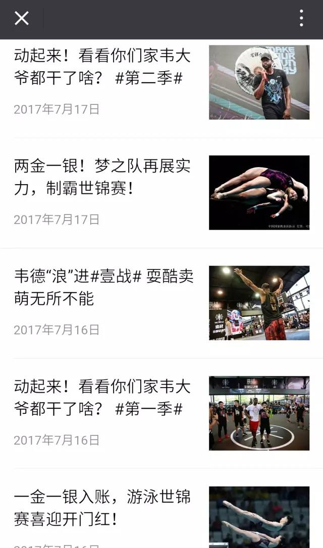 而在七月份的推送中,“韦德中国行”和游泳世锦赛战报占了六成的比例,重复的主题较多,而作为新闻快讯类的文章,游泳世锦赛战报的内容比较简单,可读性一般,因此点击量普遍偏低,这也导致了平均阅读量的下降。