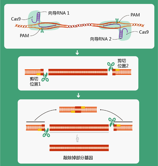 CRISPR/Cas9技术敲除掉部分基因原理图(绘图 肖媛)