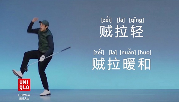 比如优衣库为了推广轻型羽绒服,曾经在去年让模特用粤语、山东话、上海话、闽南语、四川话和东北话欢快地唱起rap。可以想象网友听到一个原本低调的日本品牌唱出“贼拉轻 贼拉暖和”是一种什么样反差魔性的感觉。
