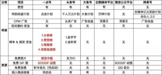通过这张表格,你可以看到,平台给自媒体人带来了哪些利益。