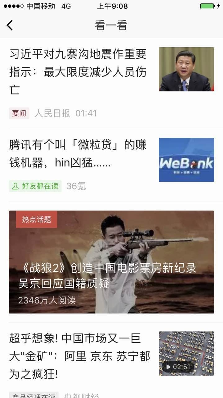 而在两个月前,“朋友圈热文”已经改头换面为“看一看”。入口变浅并覆盖全体用户,“微信头条”的功能已经初具规模。