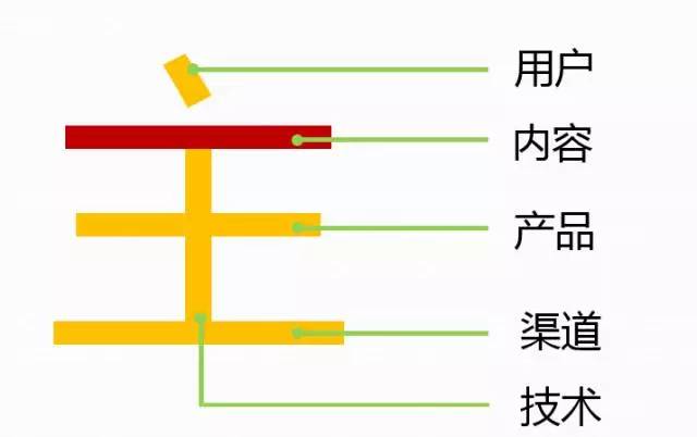 以前,我们强调“内容为王”,但这是一个片面的概念。正如上图所示,内容只是其中一环。内容放在产品之上,这就是水和杯子的关系。