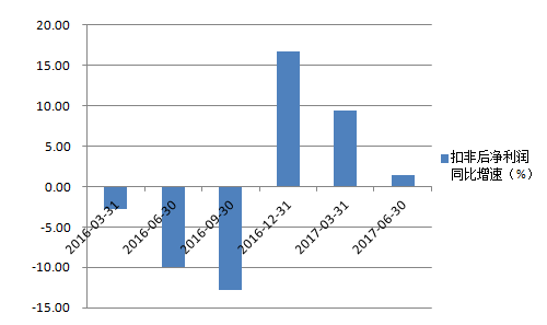 如果去除非主营业务的收入来看,机器人最近6个报告期中,仅有2016年年报的净利润同比增速超过了10%,2017年的两个报告期均不足两位数,2016年的前三个报告期甚至均为负数。