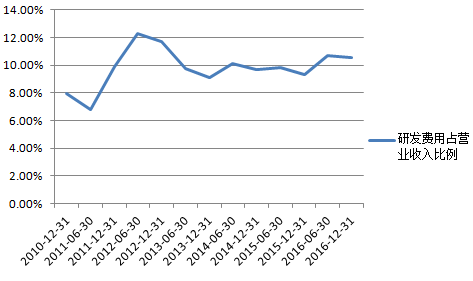即使不与四大巨头进行比较,机器人公司与国内另一家机器人行业的龙头公司——汇川技术(300124.SZ)相比,也是相形见绌。Wind资讯数据显示,汇川技术自2010年上市以来,累计研发费用达到18.56亿元,远超机器人;同时半年报以及年报披露的研发费用占营业收入比例基本保持在9%-10%左右,报告期最低的一次发生在2011年中报,其比例为6.79%,也远胜机器人公司多数报告期的水平。