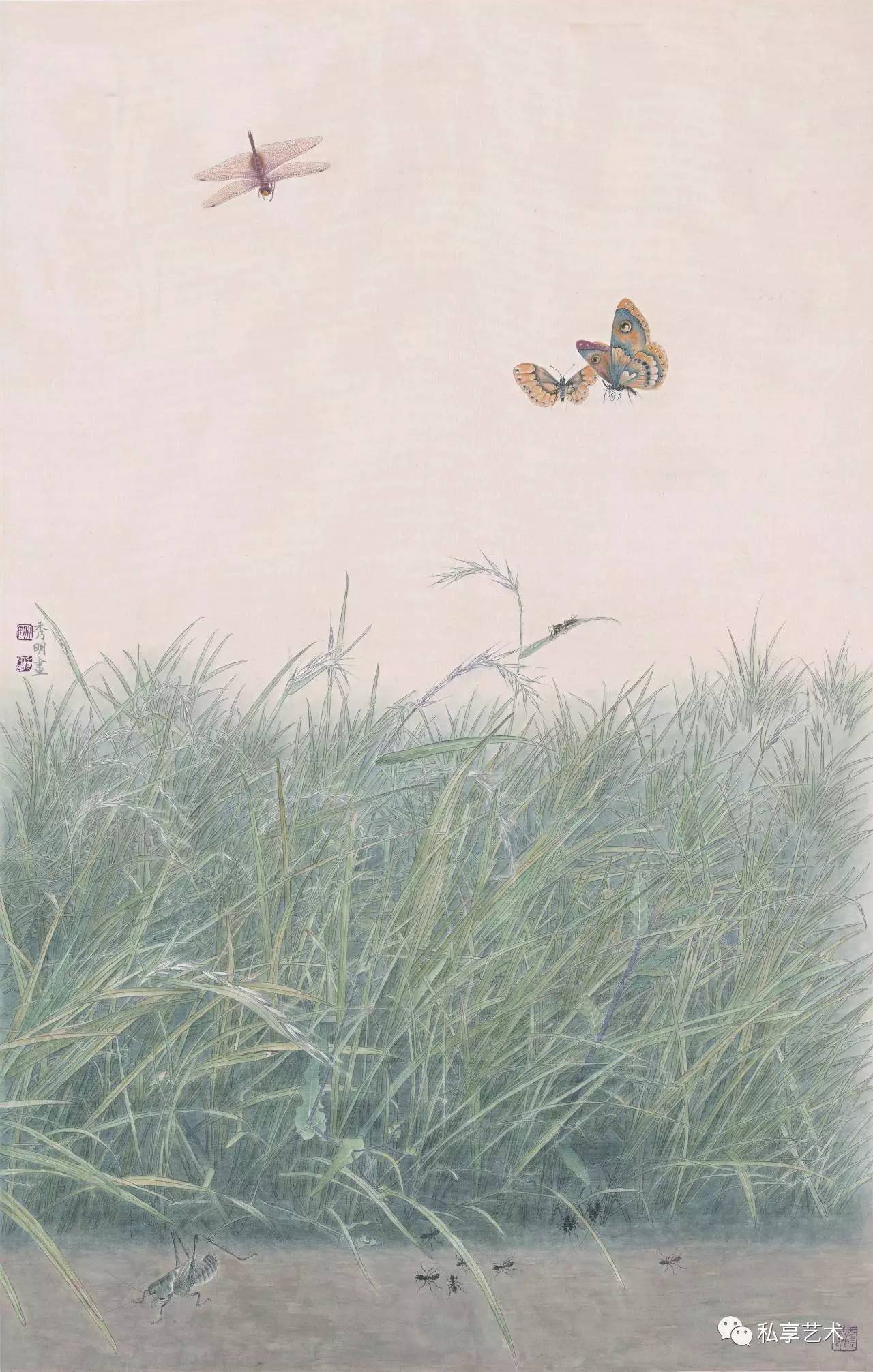 《百草园 蚂蚁》85×53cm 获“凯风和鸣——首届全国工笔画名家作品提名展”优秀作品奖