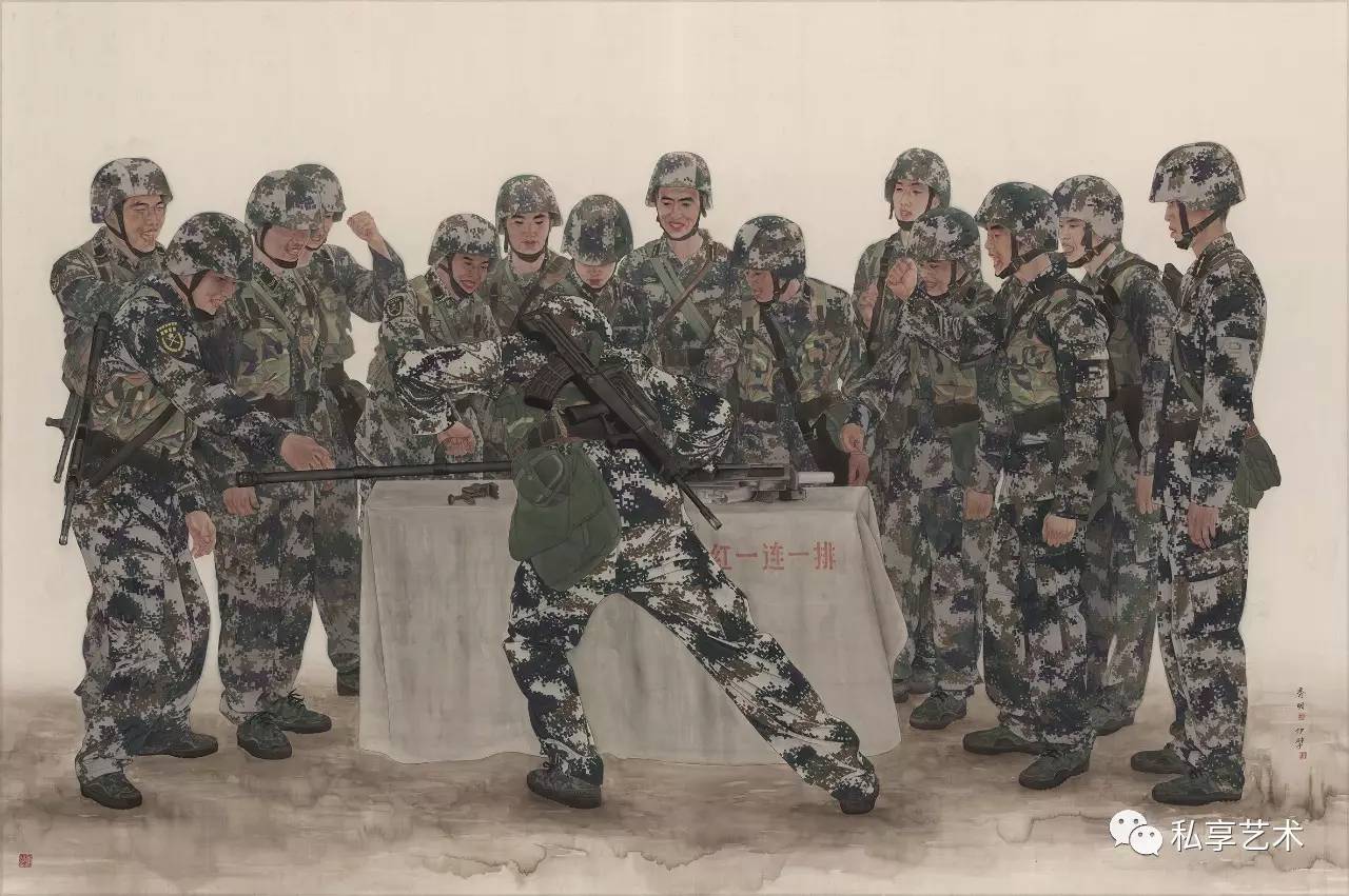 《武器分解结合比赛》200×300cm 获“建军85周年全国美展”优秀作品奖