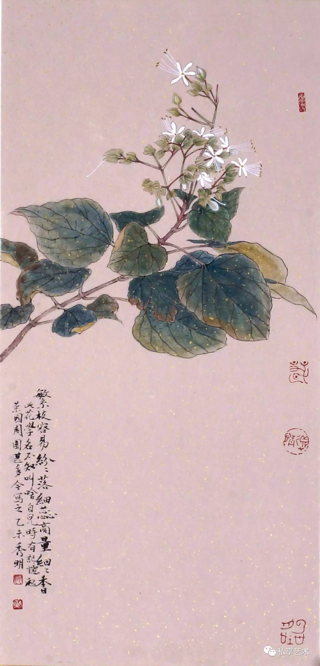而秀明认为,对于物象体悟得深入,并不等同于对它们刻画得繁缛细密。他的工笔花鸟呈现出一种落落大方的气度,他并不在某些局部做过细的雕琢渲染,而是以概括的方式捕捉并表现动植的生动情态。从这个角度上讲,秀明的工笔花鸟是具有写意性格的。
