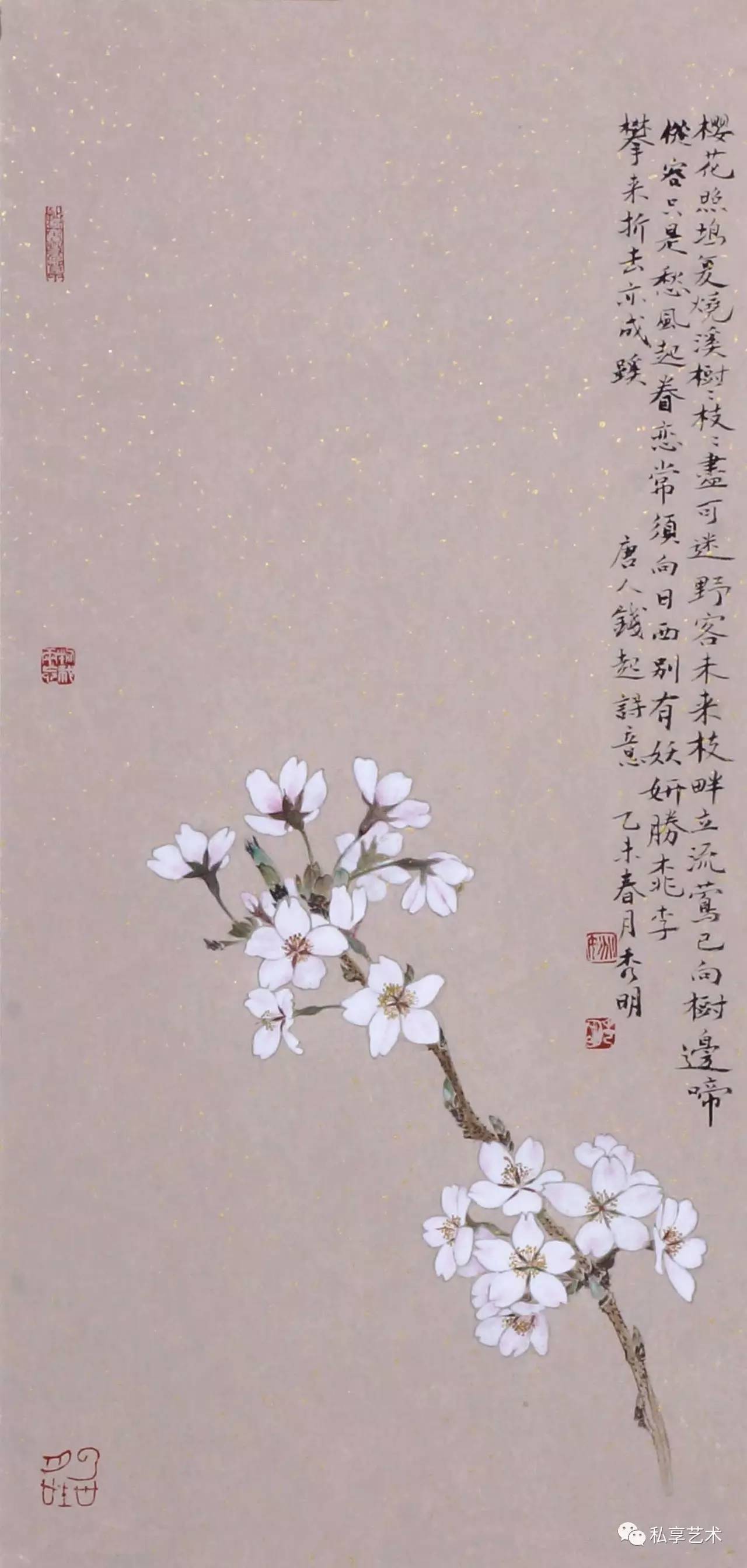 因此,秀明的花鸟画虽然也是通过写生来形成素材,但他的写生却并不是机械的对景直陈,而是将其对于花鸟的体认与眼前的观察结合在一起,从而能够把握本质而舍其繁琐细节。在他的花鸟中融入了童年记忆与现实情感,有时,这些记忆与情感的东西甚至更胜于眼前的真实。这其实也是古代画家对于写生的态度。因此,如果说秀明的花鸟画是受了宋画的一些影响,那么可能更主要体现于此。