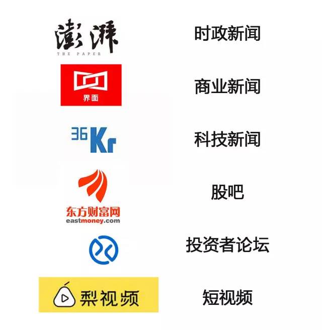比如,说起时政新闻就能想到澎湃新闻,商业新闻就想到界面新闻,科技新闻就想到36氪,股吧就想到东方财富网,投资者论坛就想到雪球,短视频就想到梨视频等等。