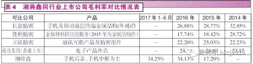 从《红周刊》记者根据wind数据整理的湘将鑫同行业上市公司毛利率对比情况表来看,A股上市公司长盈精密、胜利精密、立讯精密以及香港上市公司通达集团同类型产品的毛利率从2015年到2016年是略有下降的,而湘将鑫的毛利率却反而从17.20%飙升到34.13%,这种逆势上升的毛利率表现,其真实性本身就值得怀疑,更为可疑的是其2016年的毛利率竟然将同行业上市公司都甩出好几条街。要知道,湘将鑫产品终端客户大多是金立、魅族、小米、努比亚、青葱、朵唯等品牌手机,从售价和成本对比看,成品手机的毛利率本身都很低,而销售依赖大客户,又没什么定价话语权的湘将鑫,其作为配件的手机中框和手机外壳等产品的毛利率又能高到哪里去呢?