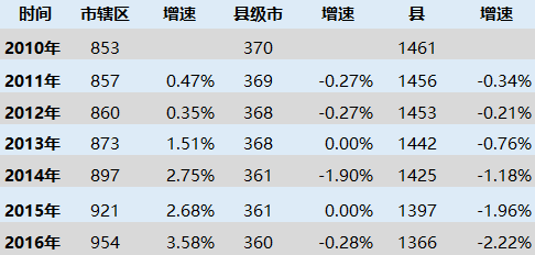 相应的,新增了多少个市辖区,也就意味着有大致相同数目的县消失了。