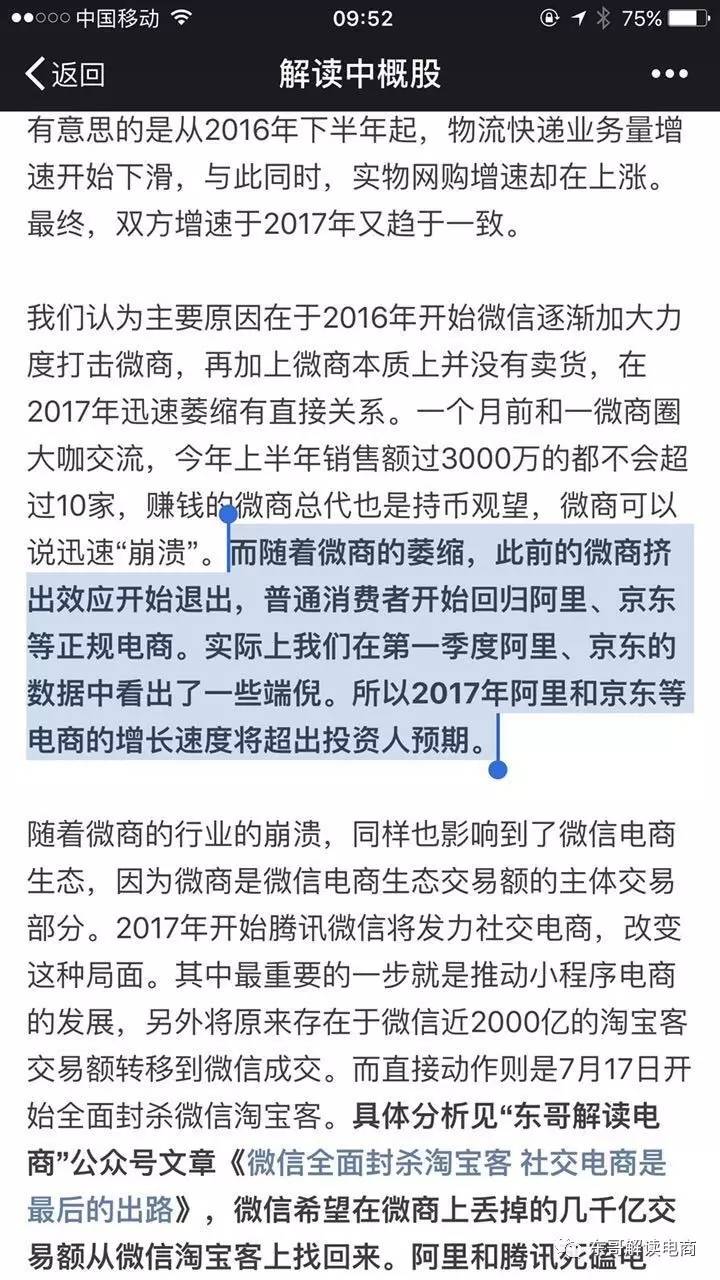 事实上,无论是天猫,还是京东,都在第二季度实现了超预期的加速增长。这与我们认为微信打击微商有直接关系,而且在半个月前的文章中做了预判。具体可见《快递数据解读网购趋势,微信电商正在替代淘宝模式|东哥解读电商》