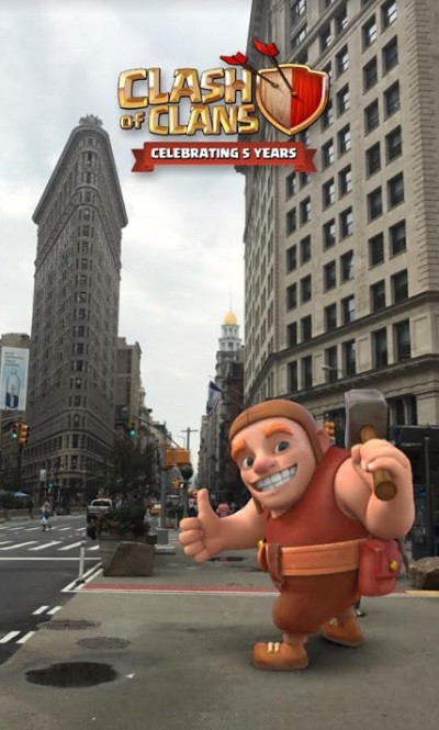 通过Facebooe旗下AR工作室的努力,现在这位来自《部落冲突》的建筑工人将会出现在我们的现实世界。当玩家将手机摄像头对转周边环境时,建筑工人变会出现在手机屏幕上,与玩家展开互动。