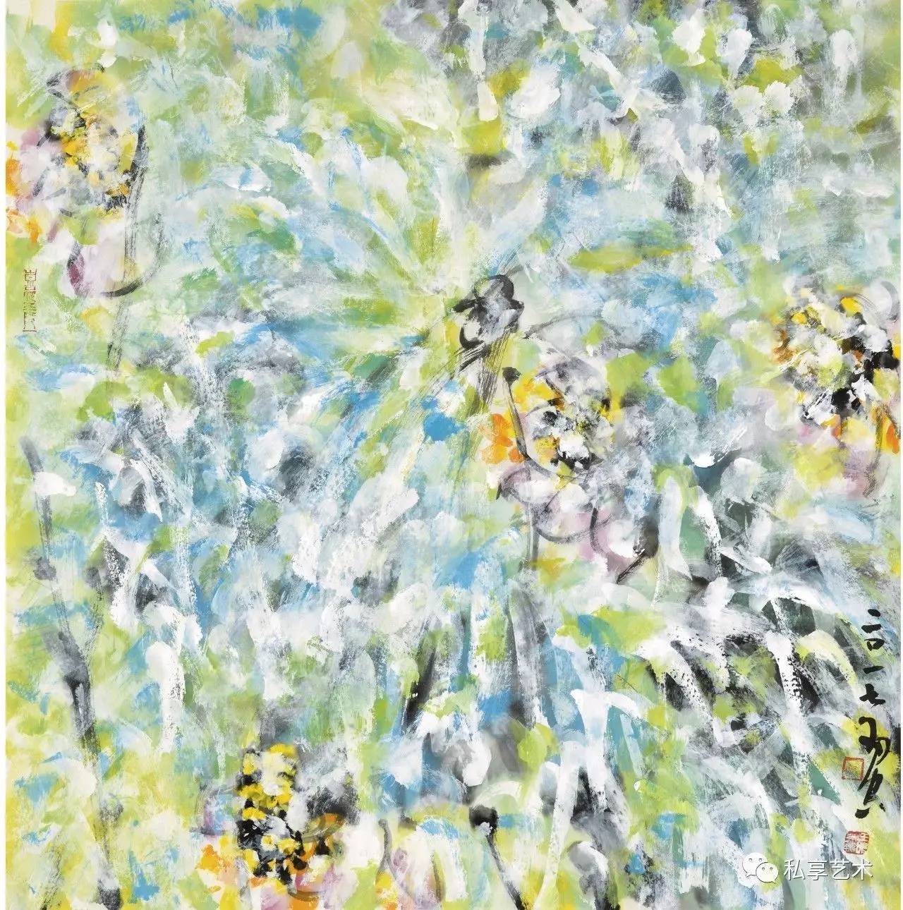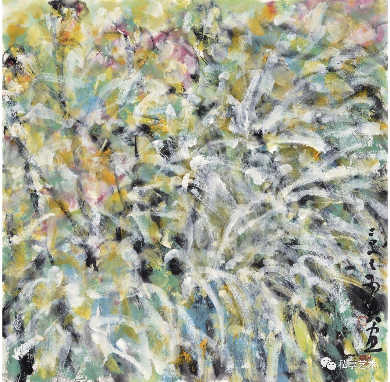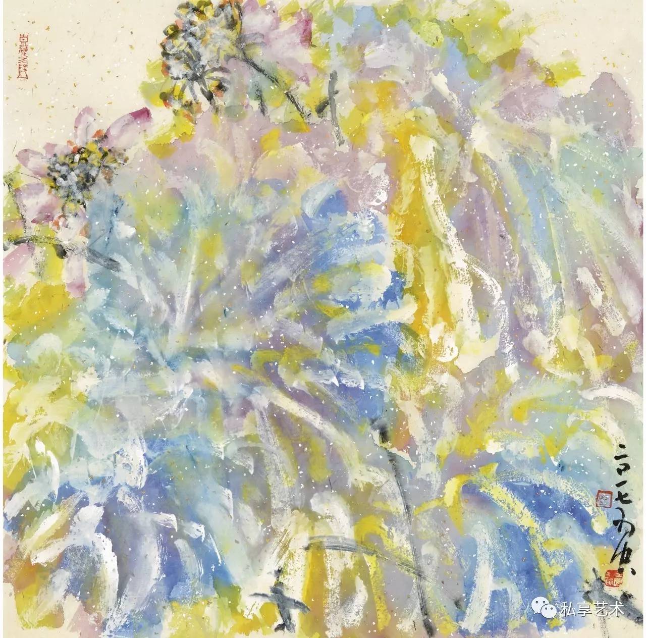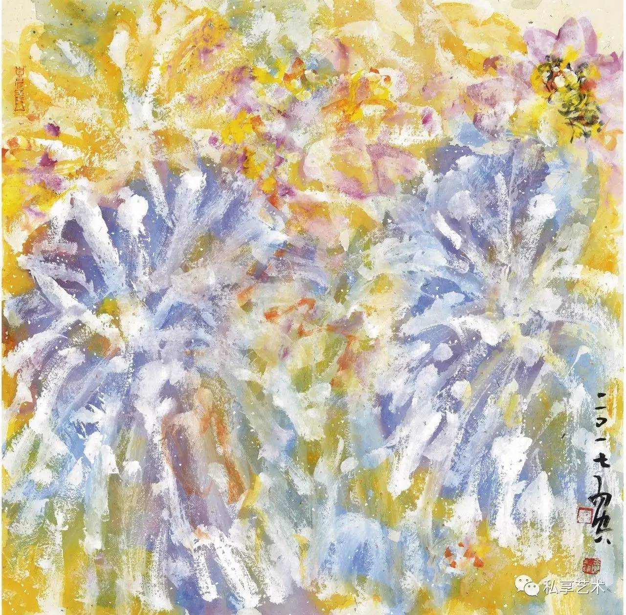 羽空 问花系列十五 68x68cm 纸本彩墨