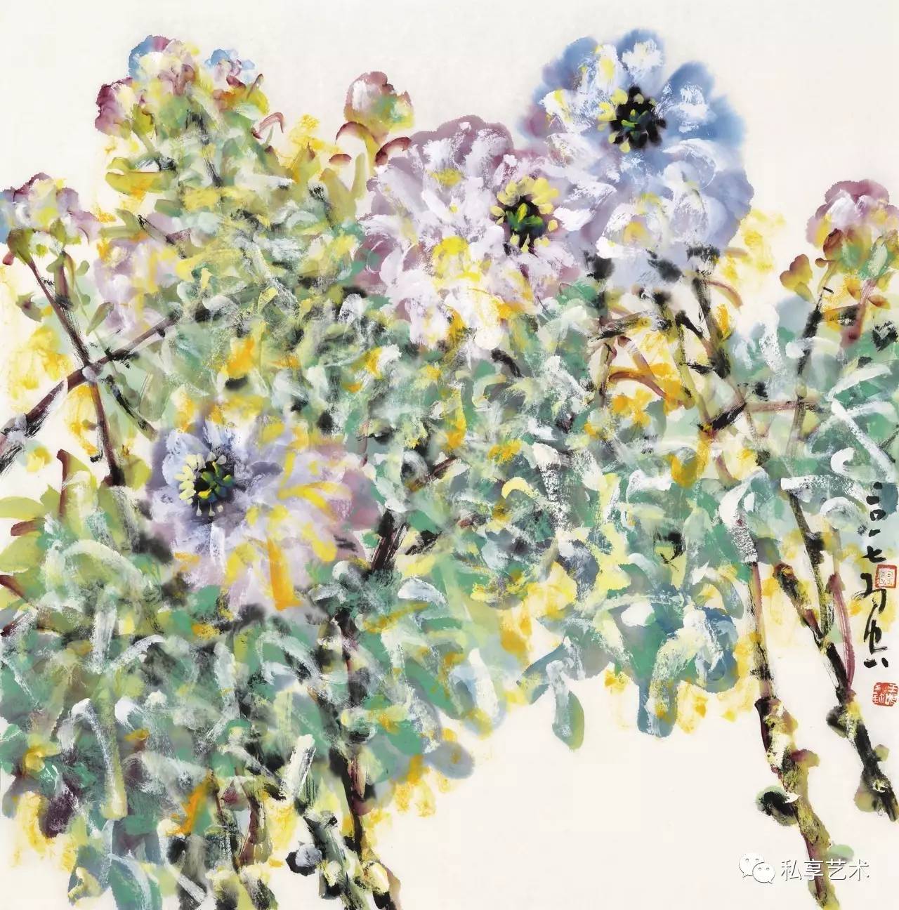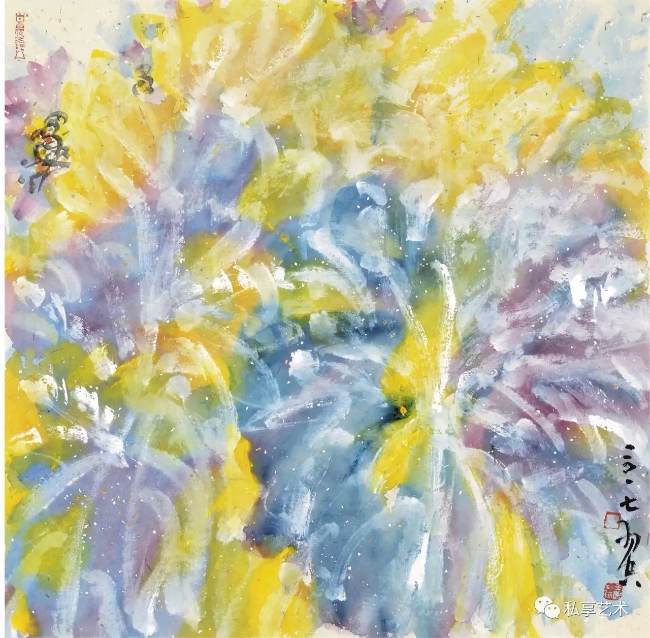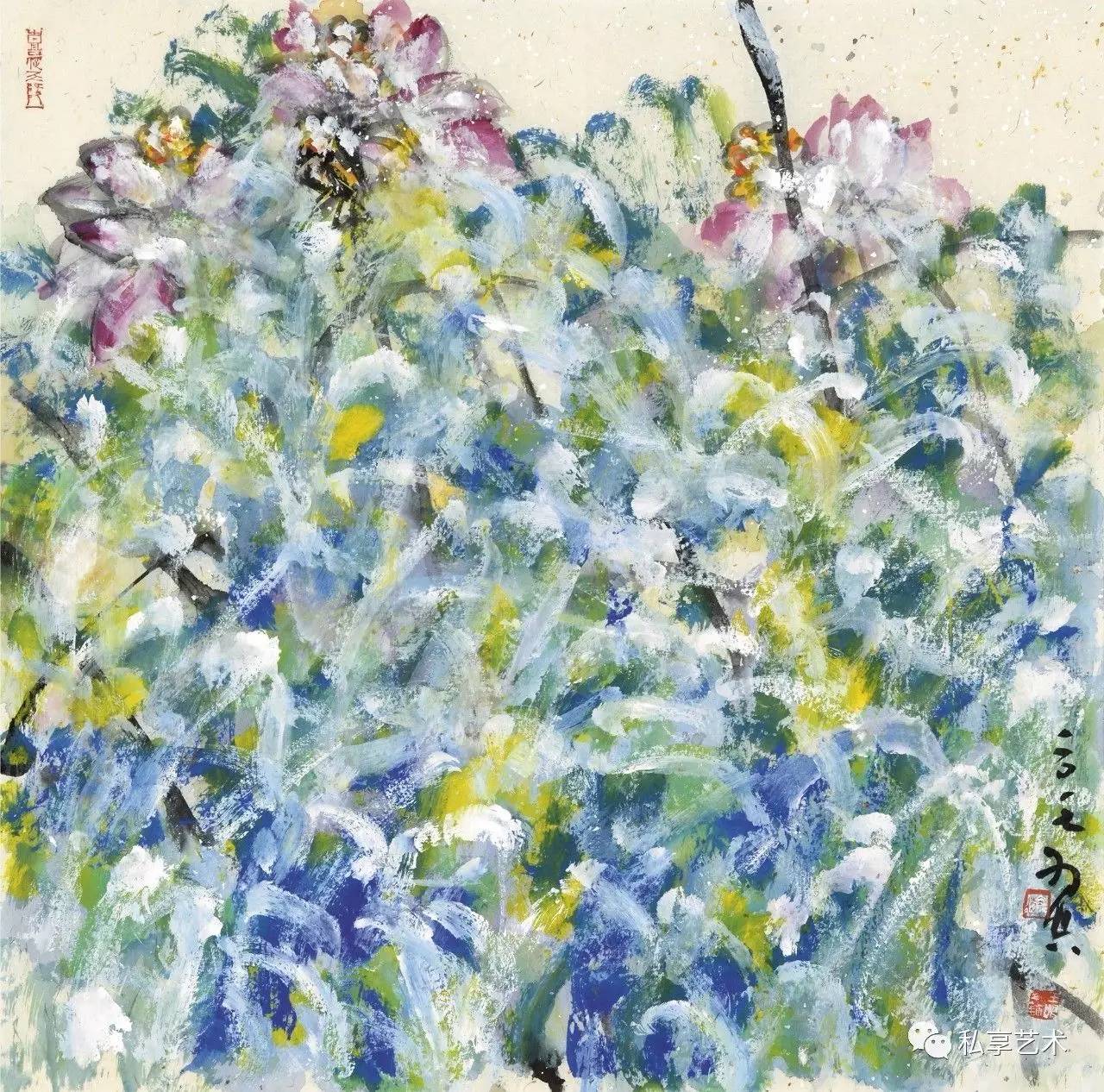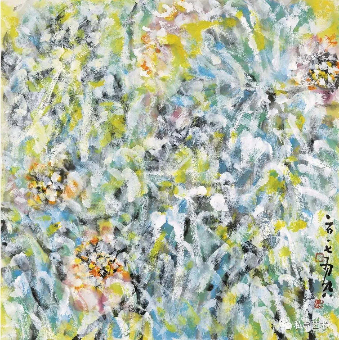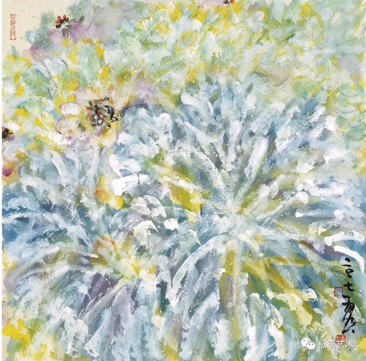 羽空 问花系列十五 68x68cm 纸本彩墨