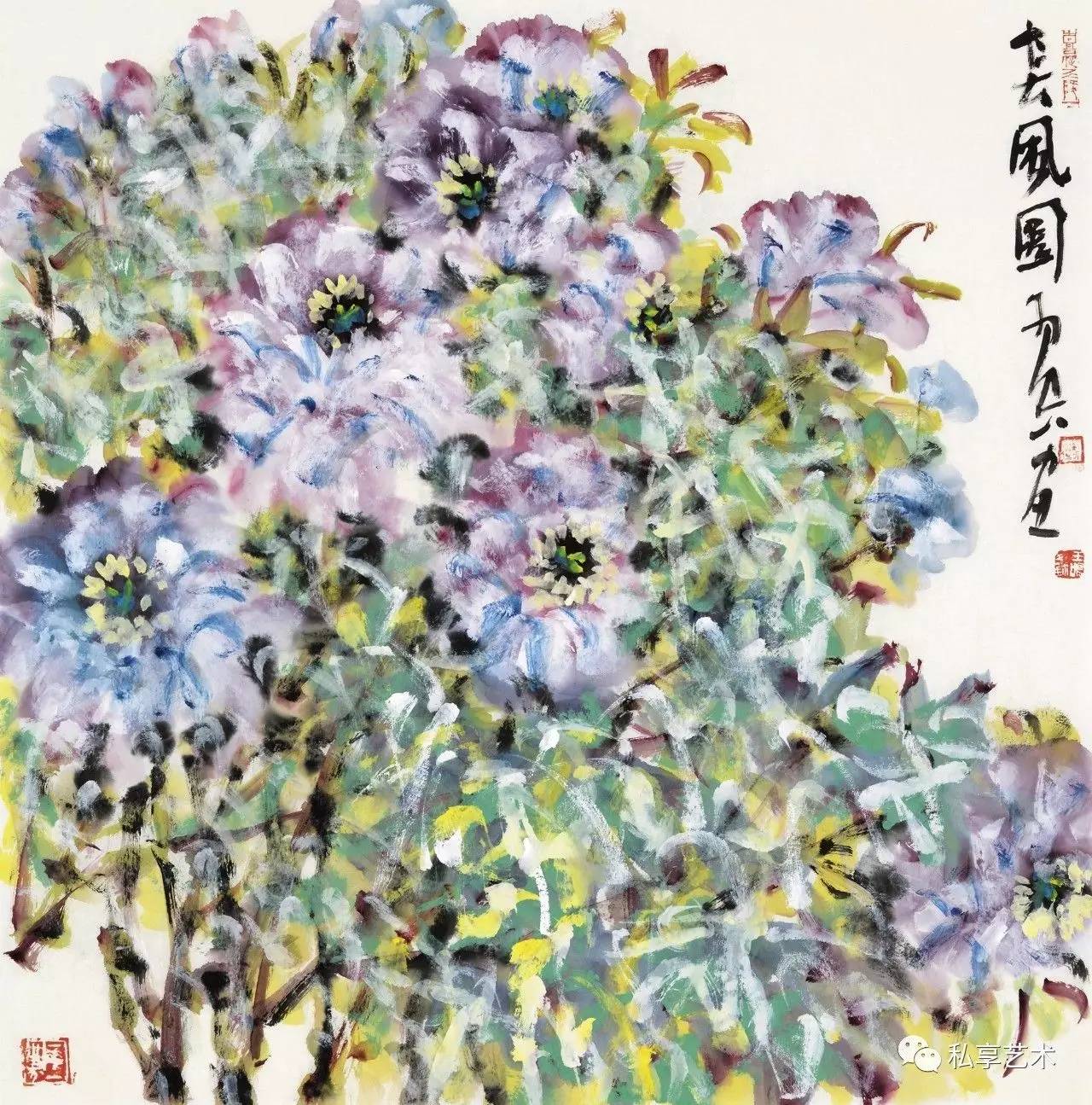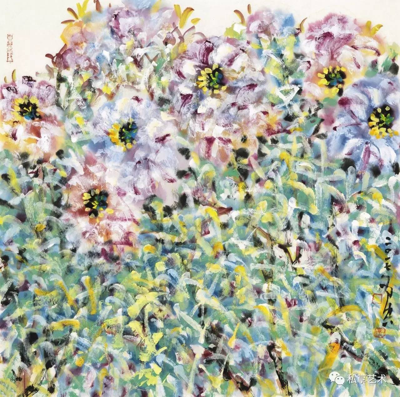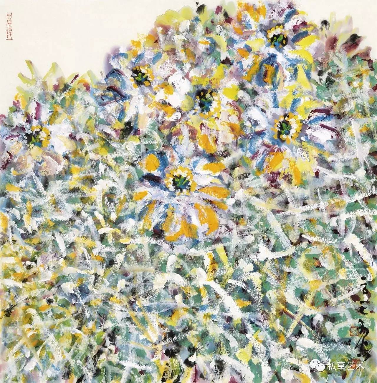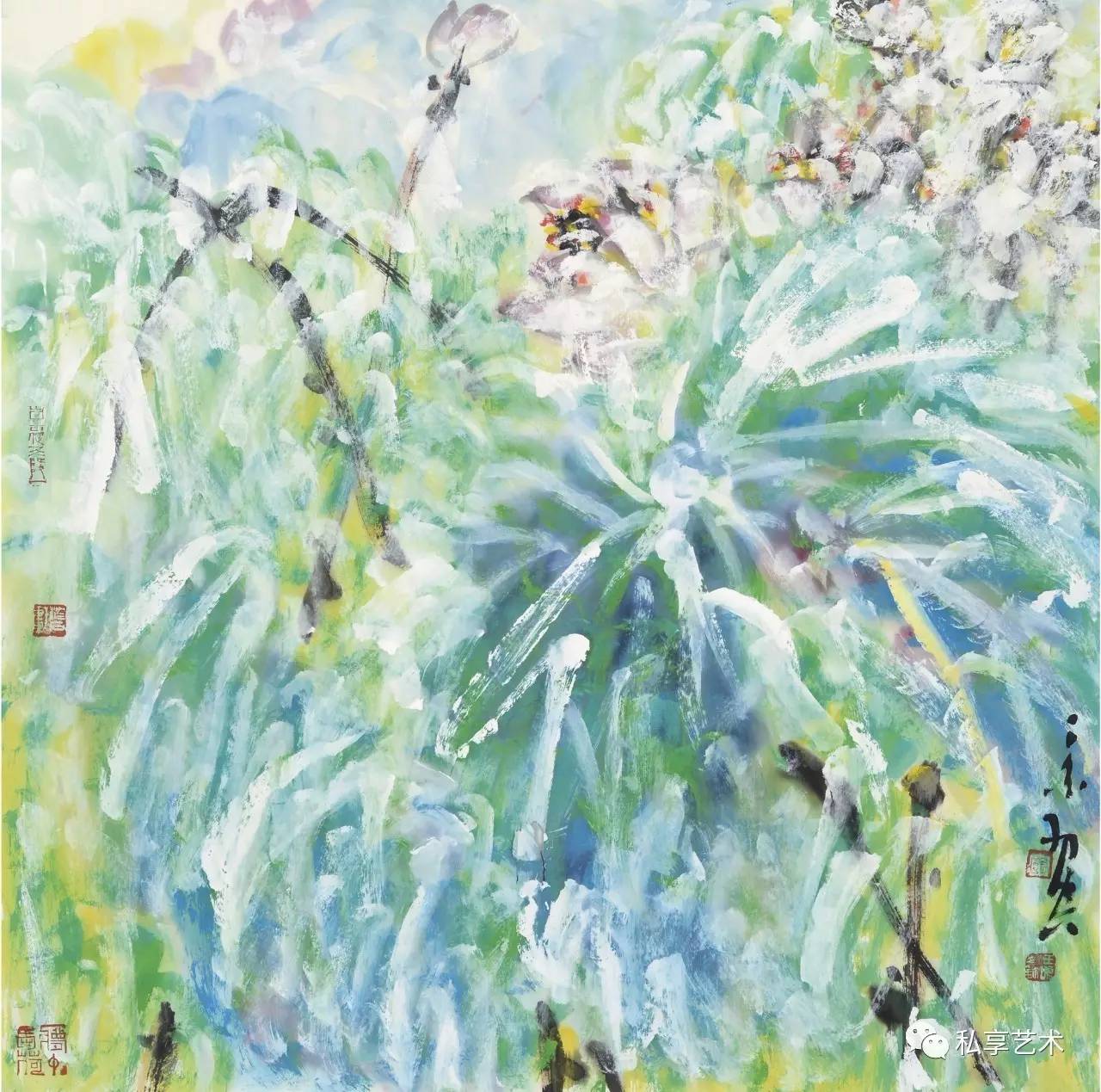 羽空 问花系列十五 68x68cm 纸本彩墨