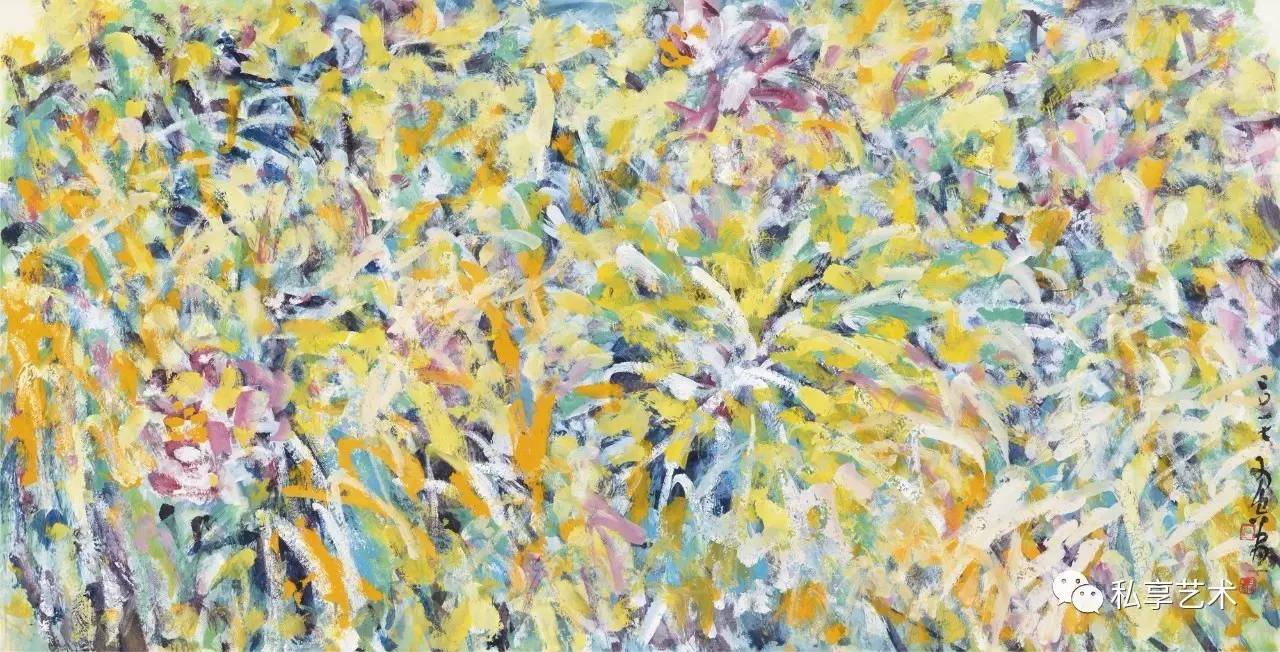 羽空善写意,写花鸟,其中尤以荷花、兰草竹石见长,以没骨法用墨或饱满浑厚,或轻重深浅虚实兼并,干湿并见,状可收放,足见其运笔熟练。早年“荷花”时期,逸气不多,还有着青年文人狂放、血性的书愤传统。这种书愤精神与西方的表现精神异曲同工,都是直抒胸臆,都是不平之鸣。羽空是文人式的书愤,不断发掘自己心灵深处的精神积淀,他问寻大自然、问寻花鸟。