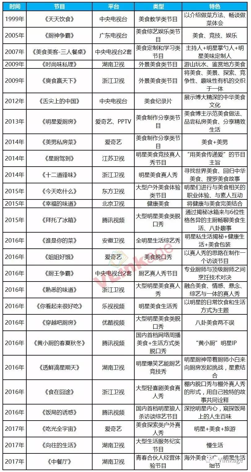据统计,2012年几大平台主打美食的综艺节目不过5档,而到2016年已经超过17档。从去年至今,浙江卫视《熟悉的味道》将明星与素人结合,棚内和户外录制结合;湖南卫视依托《向往的生活》《中餐厅》将“慢生活”提上议程;腾讯视频的《拜托了冰箱》持续发力、《饭局的诱惑》别致新颖、《黄小厨的春夏秋冬》有自主IP加持;爱奇艺的《姐姐好饿》定位独特、《吃光全世界》从棚内“走出去”;优酷视频的《穿越吧厨房》八卦美食两不误……