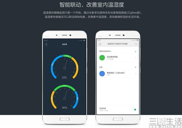 比如温湿度传感器不仅仅能够实时记录家中的温度和湿度情况,还能和空调、加湿器进行联动,比如说只要你的空调加上了空调伴侣,那么的你空调伴侣就能和温湿度传感器联动,根据夜间温度的变化自动控制空调调节室内温度,让你绝对不会吹感冒。而如果用智能插座连上了加湿器,那么智能插座也会通过湿度变化控制加湿器的开关,保持湿度适宜。