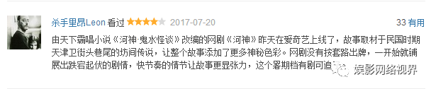在众多评论中,很多原著粉对于《河神》的改编表示认可。