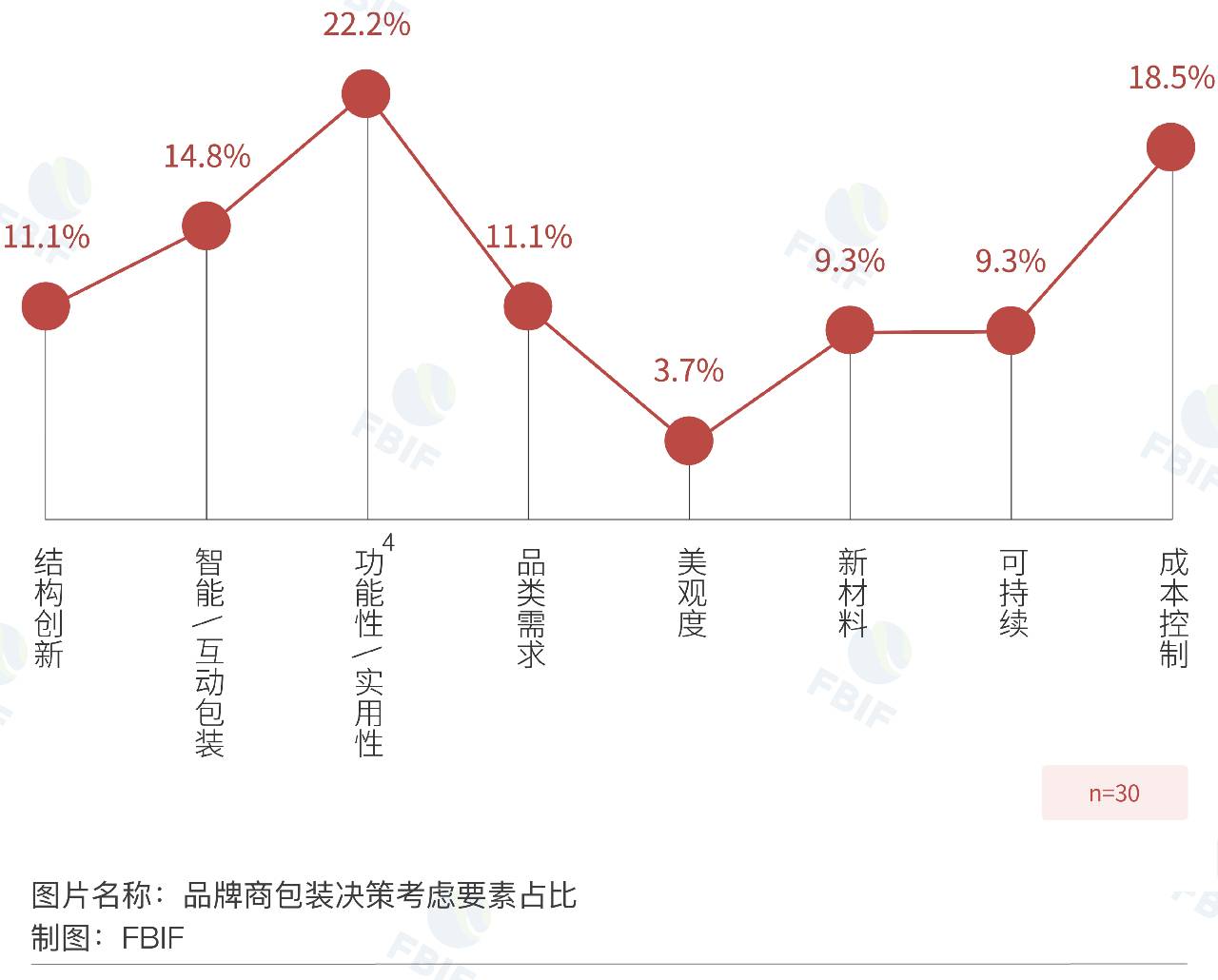 虽然决策链条上的人很重要,但更要紧的,是在决策过程当中,哪些因素左右了高层的判断,影响最终的包装方案选择。通过对比30位受访者的反馈,我们得出以下结果: