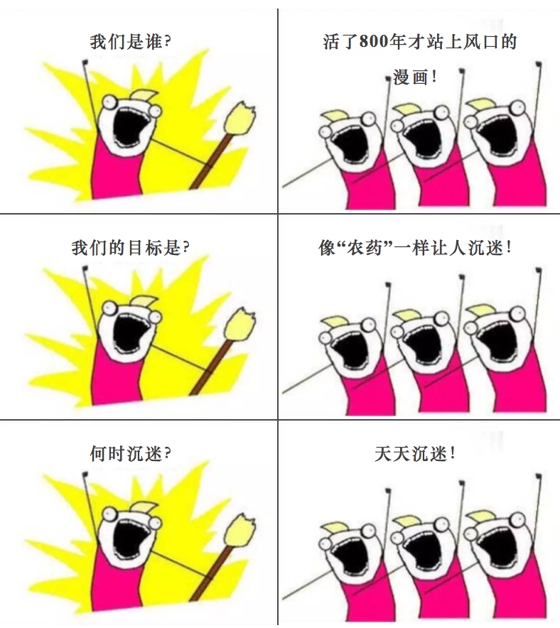 很多漫迷认为,漫画之所以令人陶醉,有一个重要原因:图像做了主角,文字沦为对白,让一大波苦陷于文字推敲和想象的读者,发现了新大陆。漫画作为一种持续性的轻度娱乐消费品实际上代表着新生代娱乐方式和生活方式的改变 —— 更为碎片化的消费时间、比起文字更递进的具象化内容、更容易理解且简单快速的故事。