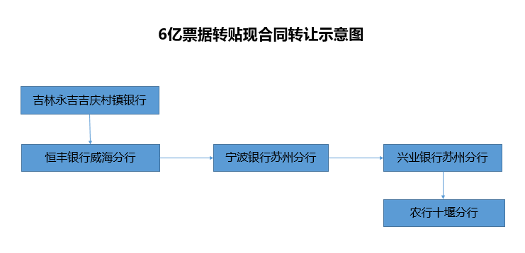 然后,票据对应的资金通过层层扣除“过桥费”后,最终到了永吉吉庆村镇银行手里。一切办妥后,永吉吉庆村镇银行给陈和强的公司贴现了5.6亿元。