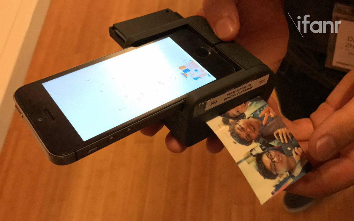 发明家的爆款商品 Prynt Pocket 就是从 Kickstarter 上孵化的创业公司。这个看起来只是把 iPhone 变成拍立得的配件,还可以让打印出的照片实现《哈利波特》电影里动态照片的魔幻效果——用 app 扫描照片,系统会自动从云端检索到照片对应的视频,然后用 AR 的效果呈现出来。