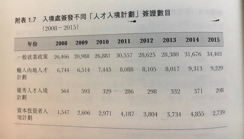 周永新注意到,近年来越来越多的内地企业到香港发展,比如来港IPO,“它们到了香港,员工不可能全从香港聘用,需要内地人来工作。公司要聘用内地人,只要出具证明说在香港找不到合适的人,就可以了。现在这个方面的‘新移民’占了每年来港人士的大部分。”