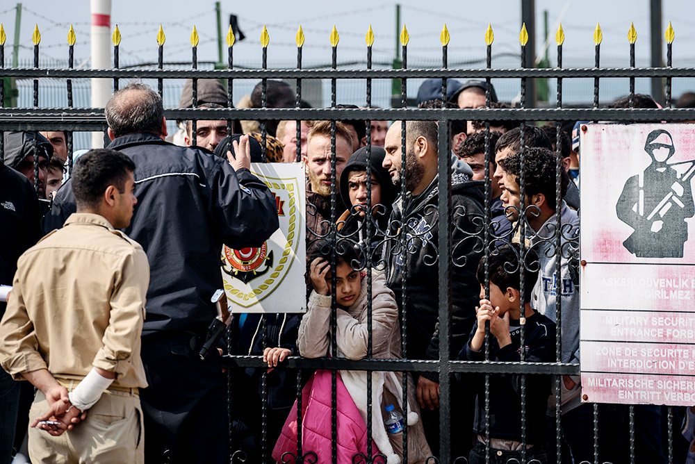 2016年3月20日,移民们在伊兹密尔的迪基利地区的一个土耳其海岸警卫队站等候,他们在试图从土耳其西部巴德米里村偷渡到希腊Lesbos岛时被抓。2016年3月,土耳其与欧盟就解决难民危机达成协议。土耳其同意接收欧洲遣返的难民,以此换取欧盟重启土耳其入盟谈判和给予土耳其人的入境免签待遇,但协议执行进程障碍重重。
